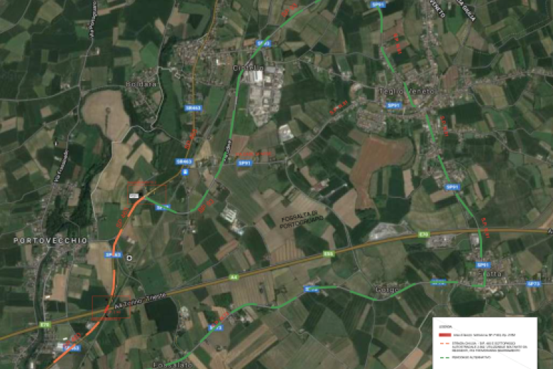 La Città metropolitana ha emesso un’ordinanza di interruzione al traffico lungo la Sp 463 "ex ss463 - del tagliamento" per il tratto dal km 62+500 al km 62+700, nel Comune di Portogruaro dalle ore 20:00 del 29/10/2022 alle ore 18:00 del 30/10/2022.